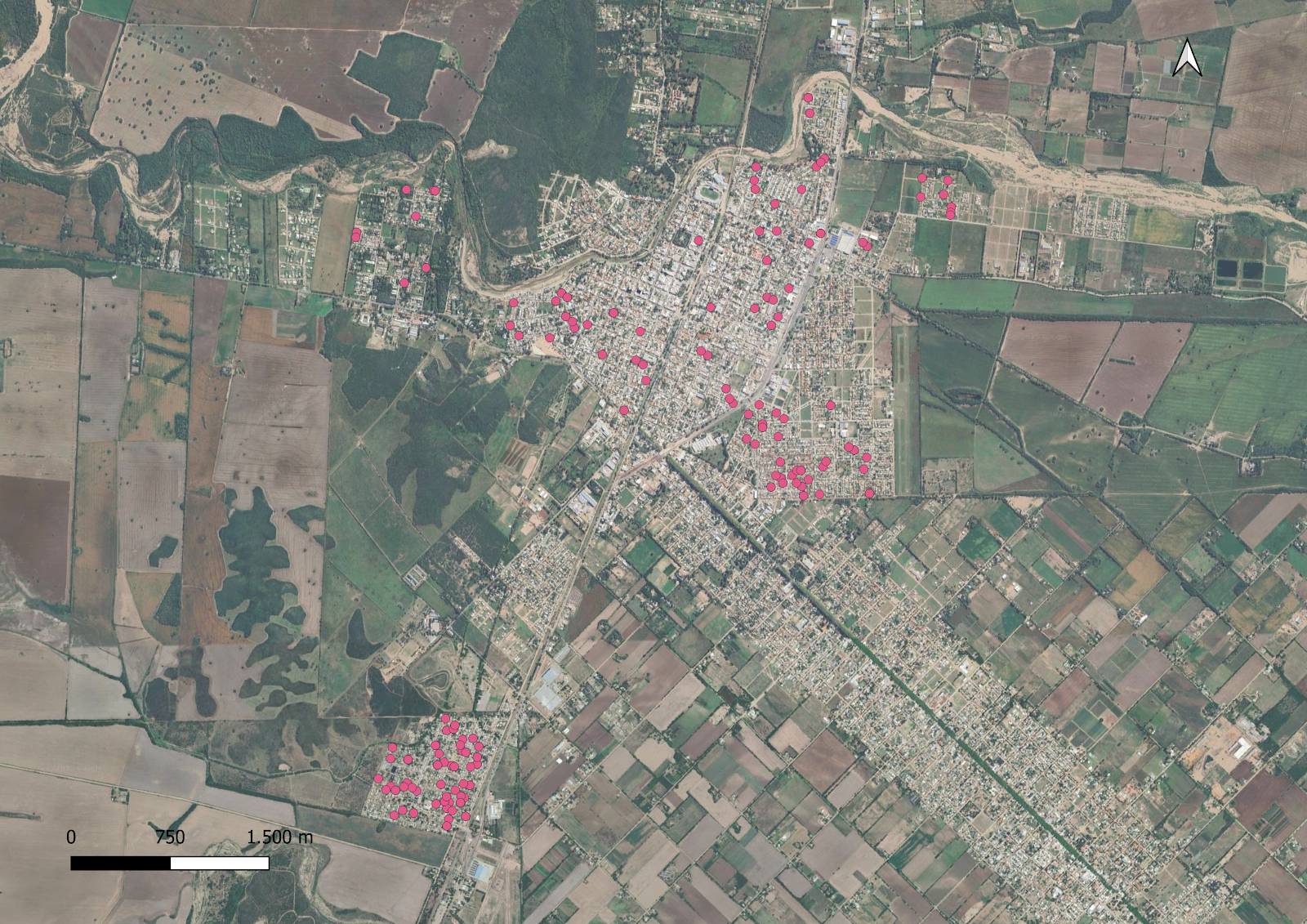Este mapa muestra la ubicación de los puntos donde se realizaron castraciones de mascotas durante la campaña en la ciudad de Jesús María, Córdoba. Cada punto de castración está representado por un punto rojo en el mapa. |