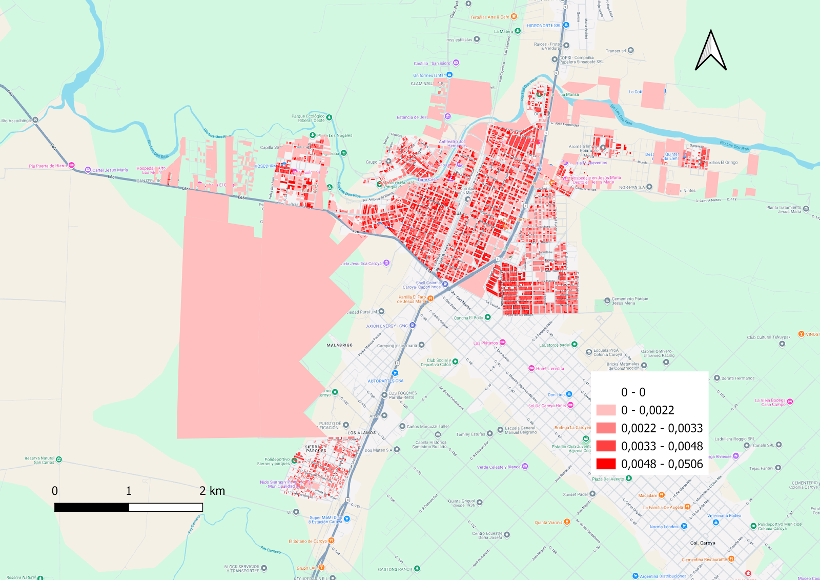 Mapa de Densidad Poblacional de Jesús María, Córdoba |